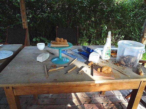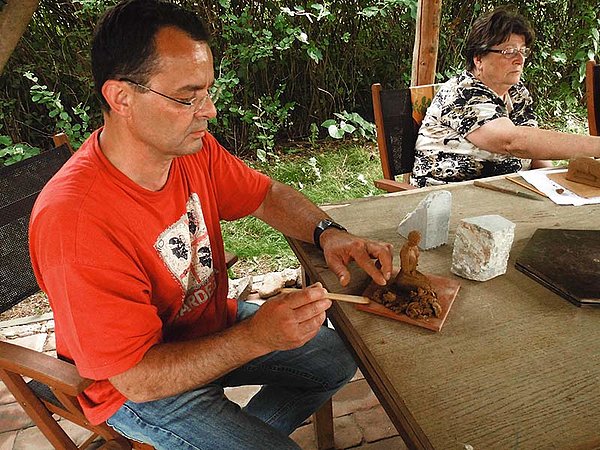 die Teilnehmer_innen ihre eigene kleine Skulptur aus Speckstein.