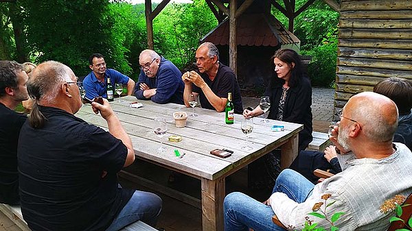 zur Diskussion im kleinen Kreis im Garten des Kunsthauses an.