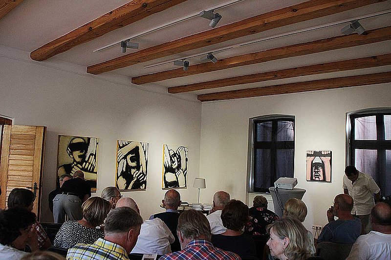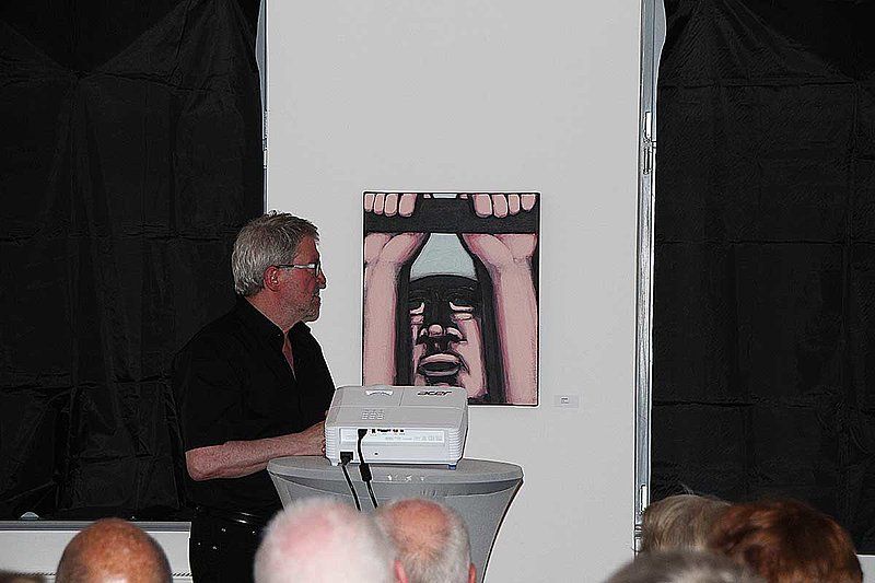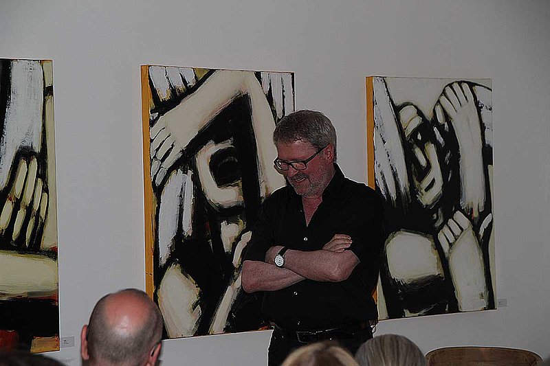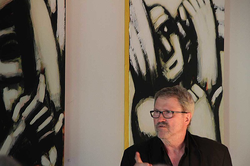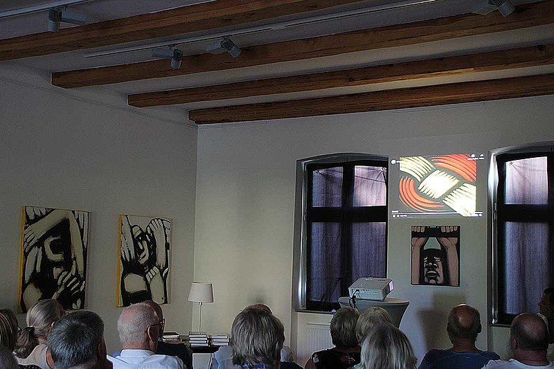 Vom Fliegen, Stürzen und Umerziehen erzählte der Maler Hans-Hendrik Grimmling in seiner Autobiografie, aus der er an diesem Abend las und dessen Originalmanuskript er neben anderen Materialien an das Archiv Bildende Kunst übergab. Er schilderte seine frühen Malversuche in der sächsischen Kleinstadt Zwenkau, den ersten Zeichenunterricht in Leipzig, wo sich für ihn schon das "Verhängnis Kunst" andeutet und er sich später mit dunklen, bestürzenden Vogelmetaphern von den Realismen der Leipziger Schule abwendete. 1984