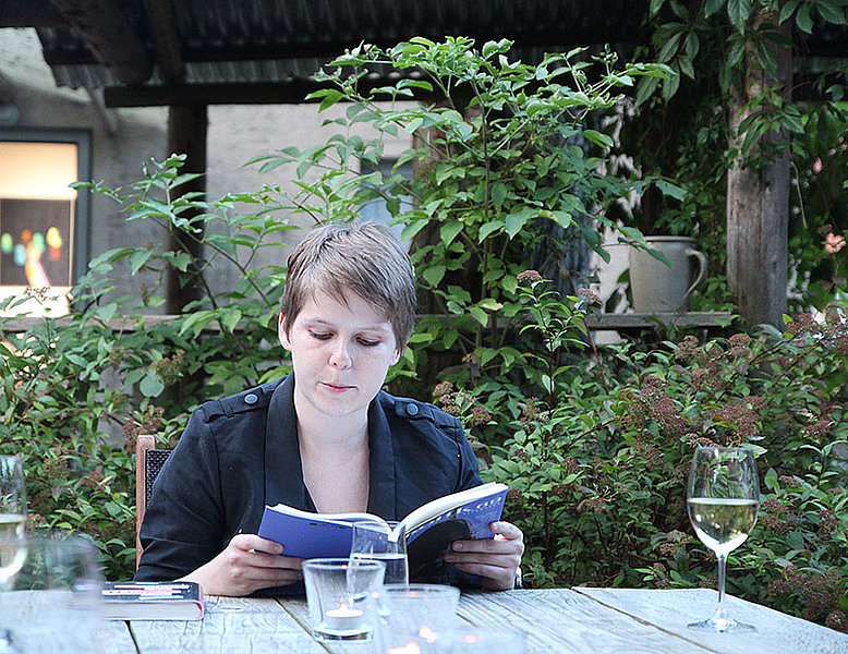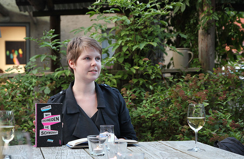 aus ihrem 2015 bei Kremayr & Scheriau erschienenen Erzähldebüt “Wir zerschneiden die Schwerkraft”. Die Lesung fand im Garten des Kunsthauses statt.